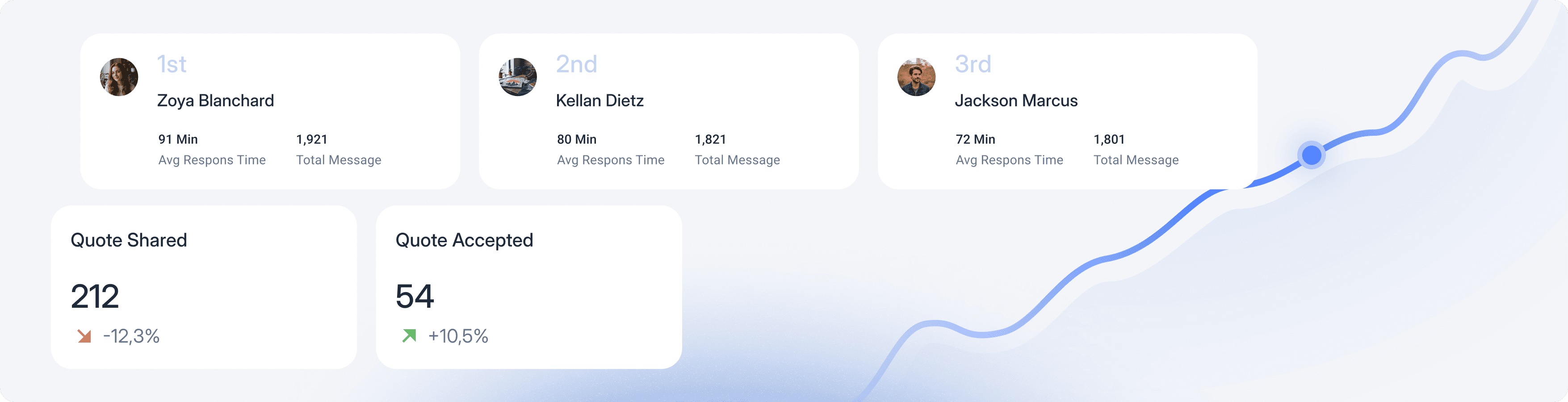 Response time, quote velocity, follow-up rate, and order conversion by rep, territory, and account. Understand where deals are moving and where they're stalling.