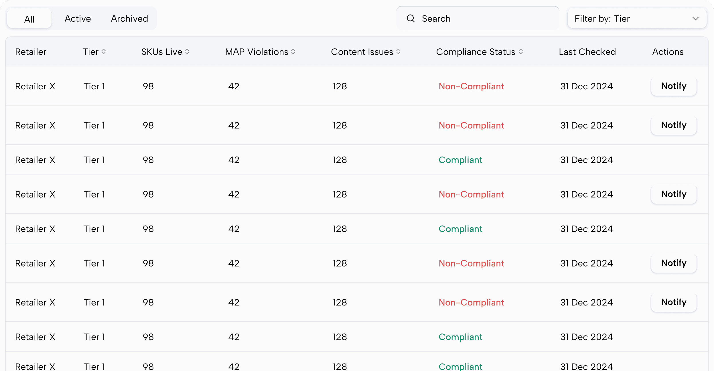 Yes. Every dashboard supports drill-down by the dimensions that matter — retailer, region, territory, product line, channel, and rep.